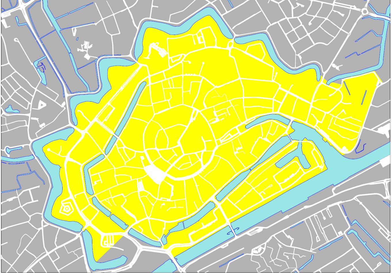 d. open ruimten tussen voorwerpen, die boven gemeentegrond of gemeentewater zijn aangebracht worden voor de berekening van de belasting mede in acht genomen.
