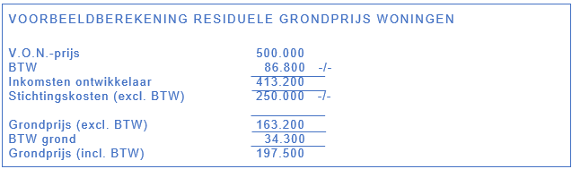 Afbeelding 1: Voorbeeldberekening residuele grondprijs woningen.