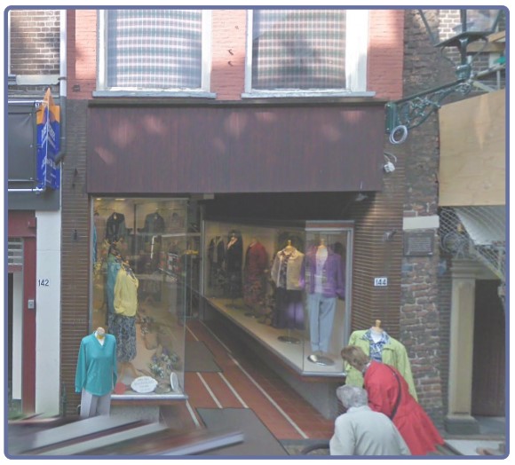 Tot een aantal jaren terug vormden de nummers 140 en 142 één winkelpand op de begane grond. Op ooghoogte was dan ook niet zichtbaar dat het winkelpand eigenlijk uit twee panden bestond. De boven- en onderkant waren compleet van elkaar gescheiden.