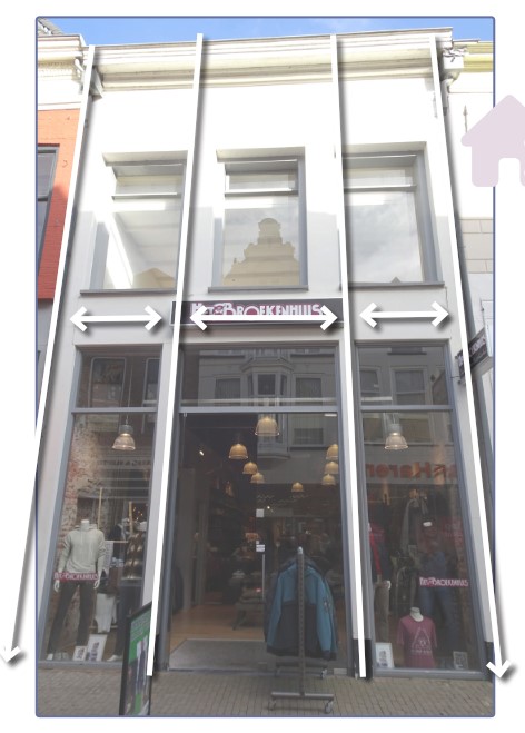 Het is het niet altijd nodig om een ‘winkelpui’ te maken. Een winkel kan ook goed functioneren achter een originele pui, mits het pand (als eenheid) voldoende aandacht trekt. |