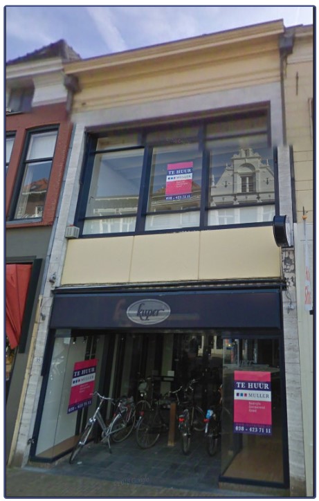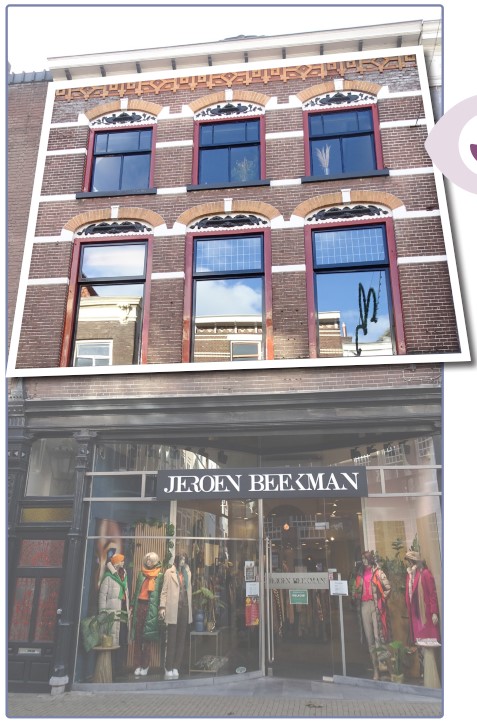 De gevel van het pand is namelijk één geheel, dat van boven tot onder doorloopt. De winkel is ingepast in een bestaand historisch pand zonder hier zichtbaar iets aan te veranderen. Er is in de pui geen onderscheid te maken tussen de winkelpui en de overige verdiepingen.