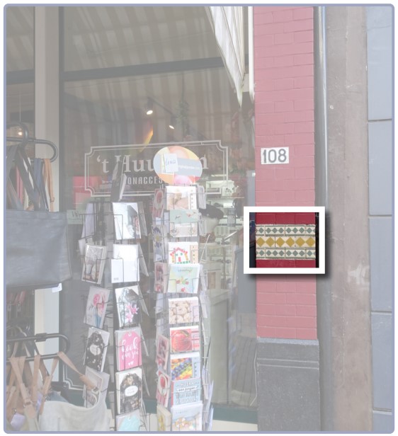 Ook op het oog hele kleine elementen kunnen in een gevelbeeld eruit springen, zoals deze mozaïek. Door het zichtbaar te laten, blijft ook de historie aanwezig in een gevel.