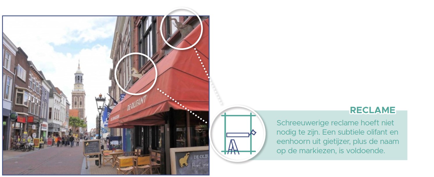 Dit document heeft dus een dubbel doel: enerzijds willen we de straat als geheel aantrekkelijker maken, met een meer authentieke uitstraling; anderzijds willen we de ondernemers en pandeigenaren op weg helpen bij het doen van een effectieve investering. En natuurlijk kunnen de principes uit de Oudestraat ook ter inspiratie dienen voor panden in de rest van de binnenstad van Kampen.
