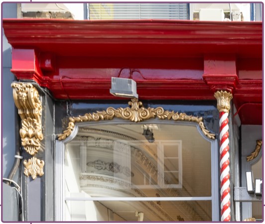 Door de kleuren boven sprekender, en de winkelpui onder juist wat donkerder te maken, krijgt het geheel veel meer diepte. De ornamenten komen meer tot hun recht, waardoor het pand als geheel (en dus de onderneming) meer opvalt.
