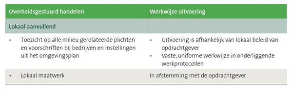 Bij overheidsgestuurd handelen bestaat vooraf meer sturingsruimte. Het gaat om taken die we zelf noodzakelijk vinden om uit te voeren, waarover we een afweging kunnen maken. We werken hier planmatig. Denk aan het actueel houden van de voorschriften in vigerende vergunningen of het toezien op de naleving van de voorschriften van de bedrijven en instellingen in onze regio. Door de omvang van het bedrijvenbestand in de regio is het noodzakelijk om op voorhand doelen te bepalen en hier prioritering aan te geven. In paragraaf 5.3 staat welke taken onder overheidsgestuurd handelen vallen.