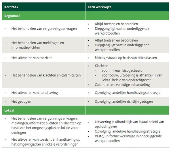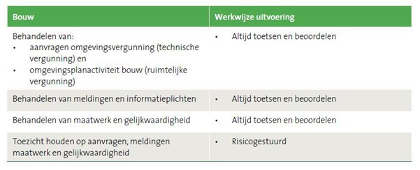 Een groot deel van onze taken valt onder omgevingsgestuurd handelen (zie paragraaf 5.2). Denk aan het verlenen van omgevingsvergunning milieu, het behandelen van een melding voor bodem of het behandelen van een bouw- of milieuklacht. Het gaat vooral om korte, cyclische activiteiten, inclusief het toezicht. Denk aan het uitvoeren van toezicht vanwege sloop- of bouwactiviteiten, bodemsanering of het uitvoeren van een oplevercontrole voor een verleende omgevingsvergunning milieu.