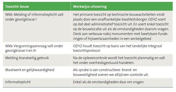 Voor de werkwijze in de behandeling van de bouwklachten, volgt OZHZ het lokaal beleid van de betreffende gemeente.