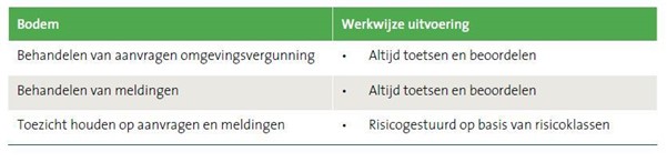 In de Uitvoeringsstrategie bepalen we de risicoklassen en de methode per klasse. Zie hiervoor hoofdstuk 5 De Uitvoeringsstrategie.