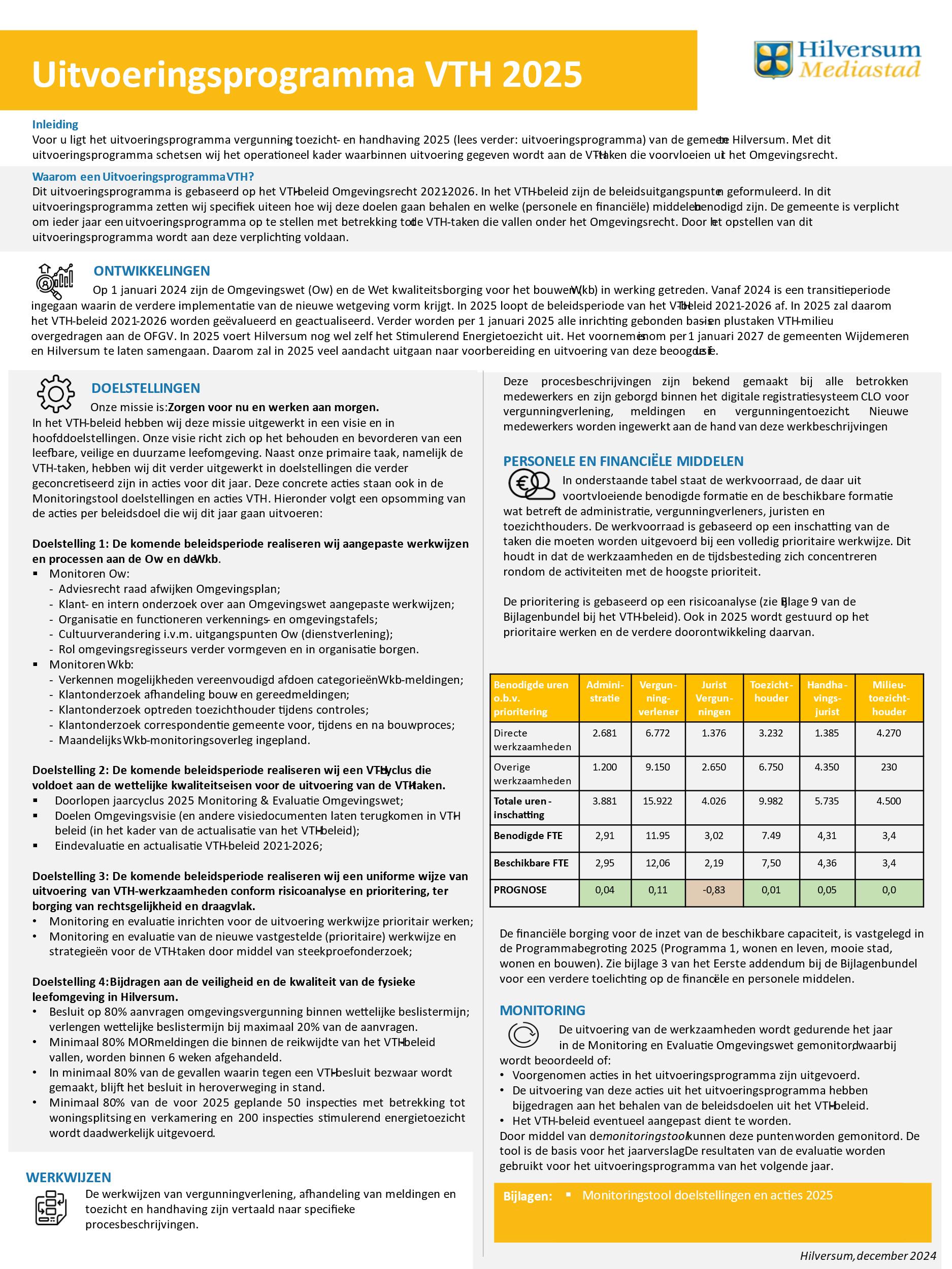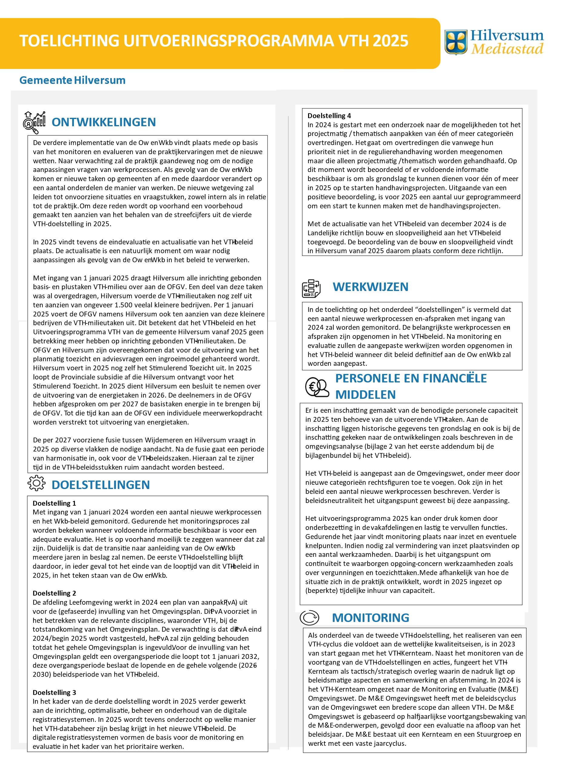 Uitvoeringsprogramma VTH 2025. Hilversum