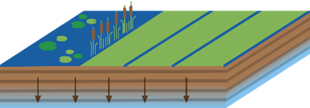Door de bodemdaling en hoge grondwaterstand is er weinig ruimte in de bodem om water vast te houden. In het veenweidelandschap verwerken we hemelwater van oudsher in de vele watergangen. Water infiltreert hier naar de diepe ondergrond en verdampt. De zoetwaterbeschikbaarheid in het veenweidelandschap is kwetsbaar, tijdens droogte laat het hoogheemraadschap veel gebiedsvreemd water in.