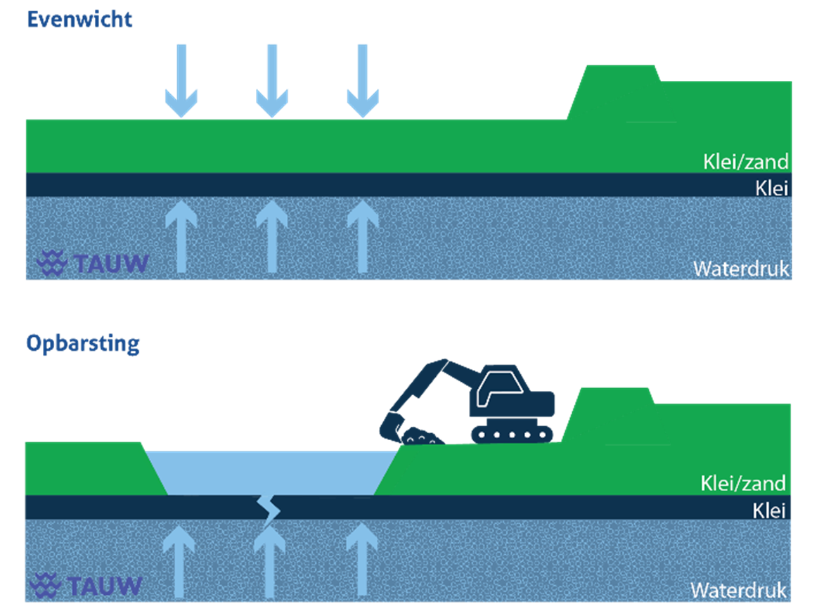 Het grondwater dat infiltreert in het hoger gelegen veenweidegebied en oeverwallandschap komt in de diepe droogmakerij omhoog. Het omhoogkomen van grondwater heet kwel. Door de kwel is het niet mogelijk om overal diep te graven in de ondergrond (4.3.3.). Om het gebied droog te houden, is continue polderbemaling (pompen) noodzakelijk. Kwel kan lokaal leiden tot hoge grondwaterstanden met grondwateroverlast als gevolg.