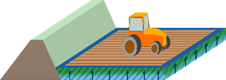 Droogmakerijen kennen over het algemeen een grote afstand tussen het maaiveld en het oppervlaktewater. Het gebied kan door peilfluctuaties hemelwater opvangen. Gebruikelijk is om tenminste 5 tot 10% van de diepe polders te gebruiken voor waterberging. De kamerbrief ‘Water en Bodem Sturend’ (3.1.) staat nieuwe bebouwing in droogmakerijen alleen toe als het niet ten koste gaat van het waterbergende vermogen. De bodem houdt veel water vast, maar is slecht doorlatend. Door de diepe ligging kunnen gevolgen van een dijkdoorbraak (overstroming) in droogmakerijen groot zijn.