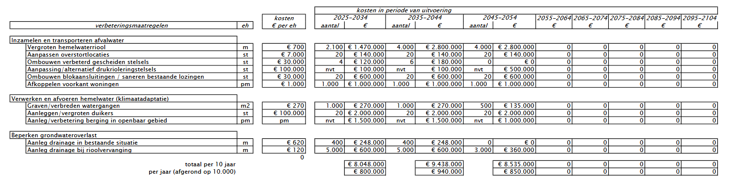 Na 2055 zijn geen bedragen voor verbetering opgenomen, omdat zelfs een grove schatting niet meer te maken is.