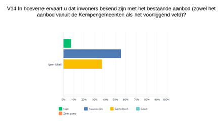 In dit deel van de vragenlijst hebben we de respondenten gevraagd in hoeverre de beschikbare ondersteuning (zowel het gemeentelijke aanbod en het aanbod in het voorliggend veld) aansluit op de behoeften van inwoners in de Kempen.