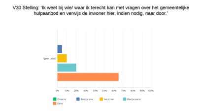 Als gemeenten vinden we het belangrijk dat het totale hulpaanbod bekend is bij samenwerkingspartners en inwoners en dat inwoners die het nodig hebben, weten waar ze (laagdrempelig) terecht kunnen voor ondersteuning. In dit onderdeel hebben we gevraagd naar de bekendheid, maar ook naar ervaringen met het aanvraagproces van gemeentelijke, maar ook landelijke voorzieningen (denk dan dus aan minimaregelingen, bijzondere bijstand en schuldhulpverlening, maar ook bijvoorbeeld aan huur-en zorgtoeslag). Dit hebben we uitgevraagd d.m.v. een aantal stellingen en open vragen.