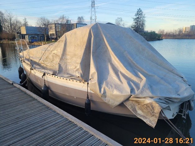 De eigenaar van het bovengenoemde vaartuig kan niet worden achterhaald. Gelet op bovengenoemd artikel roepen wij de eigenaar of houder van dit vaartuig op, deze voor het eindigen van de gestelde begunstigingstermijn van de aankondiging te verwijderen.