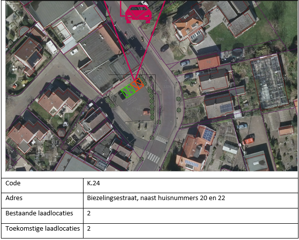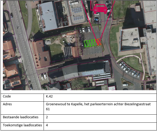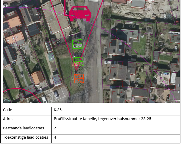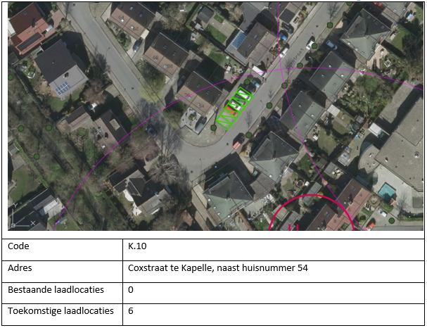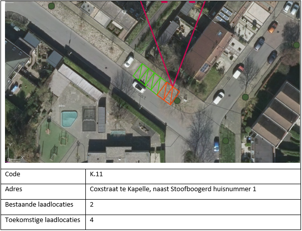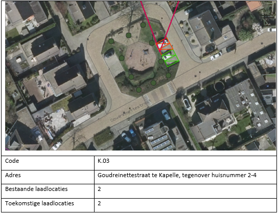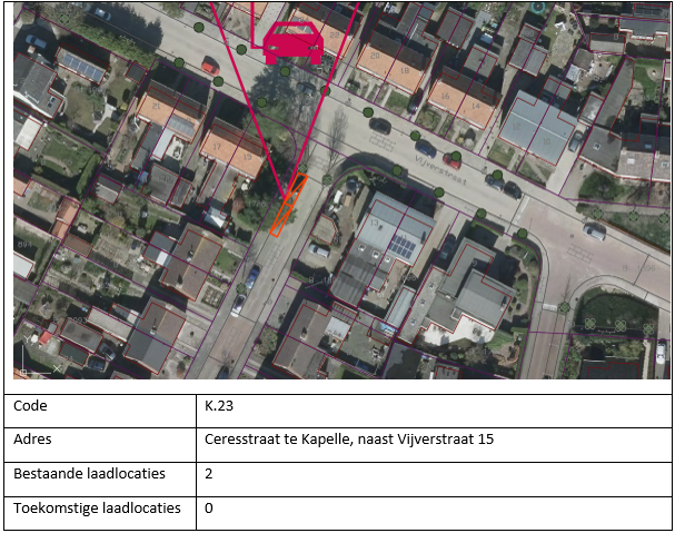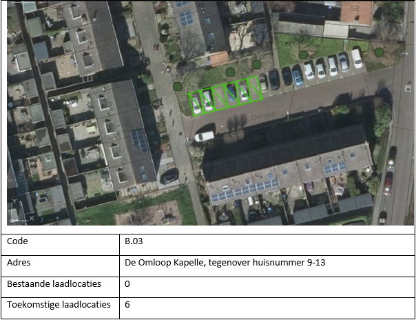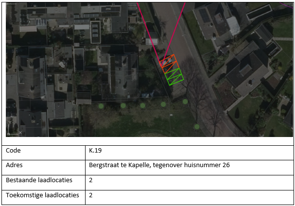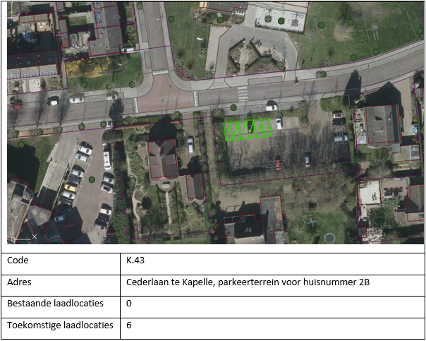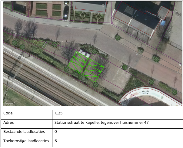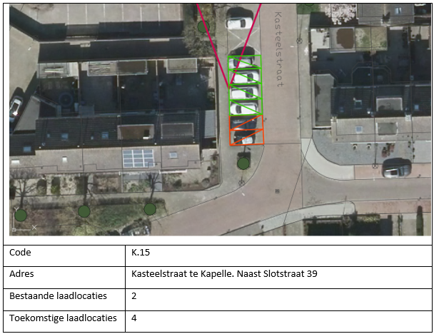 De gemeente Kapelle werkt aan een dekkend netwerk van laadpalen in de gemeente. Om het laden van voertuigen goed te faciliteren reserveren we de parkeervakken bij laadpalen alleen voor het laden van elektrische voertuigen. Hiervoor is een verkeersbesluit nodig. We werken momenteel aan twee verkeersbesluiten. Eén voor alle bestaande laadpalen en één voor alle toekomstige laadpalen. De toekomstige laadpalen plaatsen we niet meteen. We laten pas laadpalen plaatsen als er vraag naar is. Door deze verkeersbesluiten in één keer te nemen besparen we later veel tijd in het aanvraagproces van een laadpaal. In dit document staan met rood de parkeervakken aangegeven die we bij bestaande laadpalen reserveren en in groen de plekken die we reserveren voor toekomstige laadpalen.