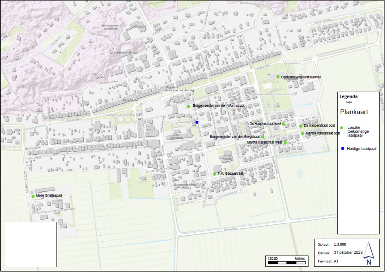 Onder voorbehoud van technische belemmeringen laten we in 2024 laadpalen plaatsen op de parkeerplaats aan de Burgemeester van den Wormstraat achter de Ambrosijn en op de parkeerplaats Oosterreeweg / Kerkelaantje .