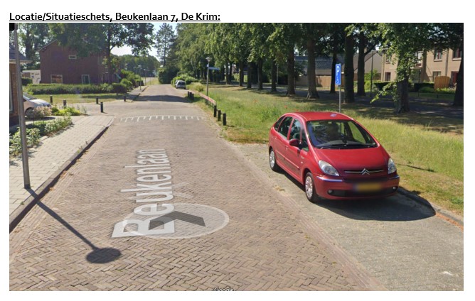 - Nabij Beukenlaan 7, De Krim een algemene gehandicaptenparkeerplaats aanwezig is;
