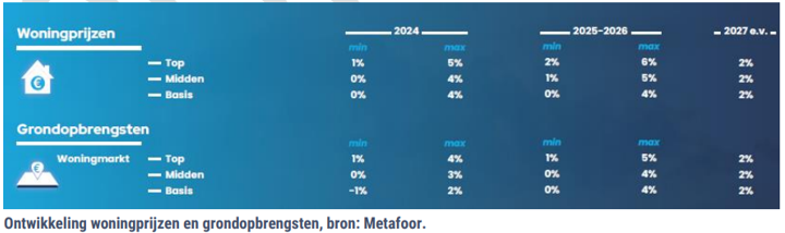 Kort samengevat geeft de ABN het volgende overzicht voor 2024 voor koopwoningen: