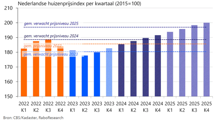 Doordat de vraag naar woningen stijgt en er minder nieuwbouwwoningen zijn gebouwd, blijft het aantal woningverkopen laag. De bouw loopt achter door grote politieke onzekerheid na de val van het kabinet, opgelopen kosten voor arbeid en materiaal, een hogere rente en gestegen prijzen van bouwgrond zijn de oorzaken. Er worden minder bouwvergunningen uitgegeven en sommige projecten zijn niet meer haalbaar waardoor ze worden gestopt.