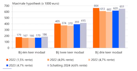 Volgend jaar kunnen huizenkopers meer lenen en dus meer bieden op een huis dan dit jaar. Dit hangt samen met de voorziene cao-loonstijging van ongeveer 6 procent, gevolgd door 4,5 procent in 2025. Het Centraal Planbureau (CPB) verwacht dat het bruto modaal inkomen dit jaar uitkomt op € 41.500 en in 2024 op € 44.000, terwijl dit in 2022 nog 39.000 euro was.