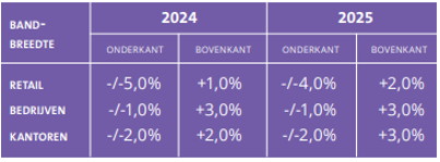 Stadskwadraat gaat als prognose voor de prijsontwikkeling voor het commercieel vastgoed uit van de volgende parameters: