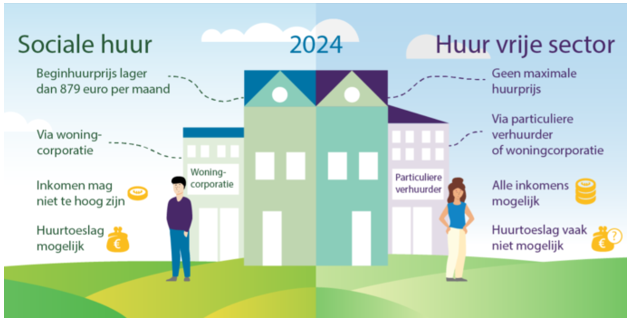 Sociale huur heeft een beginhuur tot maximaal € 879,66 per maand, huurtoeslag is mogelijk.