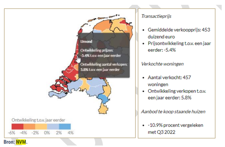 De NVM geeft het volgende aan in haar “Analyse woningmarkt 3e kwartaal 2023”: