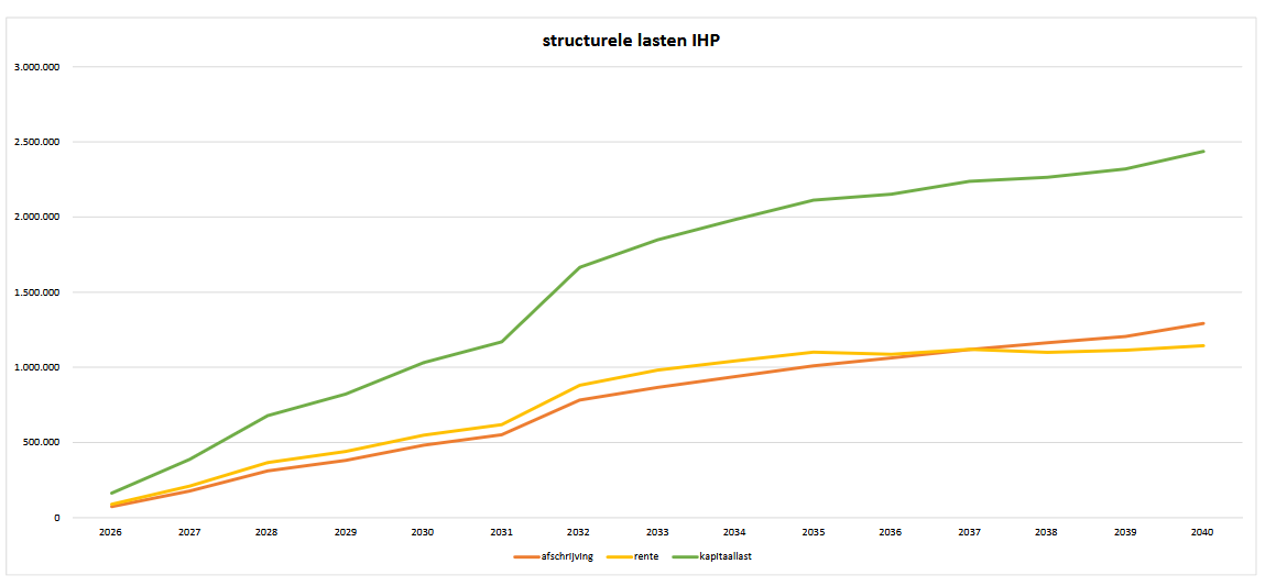 Kapitaallasten zijn in de planning aangegeven als moment dat de afschrijving van de totale investeringssom een plek krijgt in de gemeentelijke boekhouding. We gaan er op dit moment van uit dat dit ongeveer 2 jaar na start bouw is. Met name omdat de lasten pas in het eerstvolgende hele jaar na oplevering opgenomen worden.