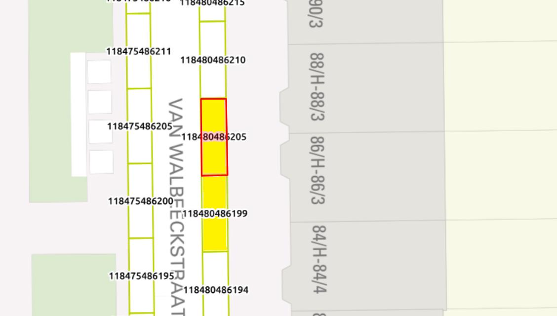 Twee parkeerplaatsen ter hoogte van perceel Van Walbeeckstraat 86 (parkeervaknummers 118480486199 en 118480486205) aan te wijzen voor het opladen van elektrische voertuigen door het plaatsen van een bord conform model E8c van Bijlage I van het RVV 1990, gecombineerd met onderbord OB504 met daarop afgebeeld twee pijlen op een hoek van 45° (RVV 1990).