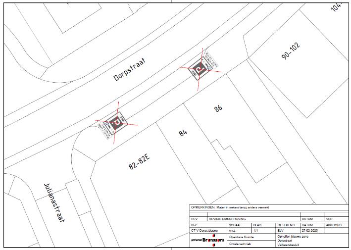 Een en ander overeenkomstig is met de bij dit verkeersbesluit behorende situatietekening CT-V-Dorpstblzone, d.d. 27-02-2025.