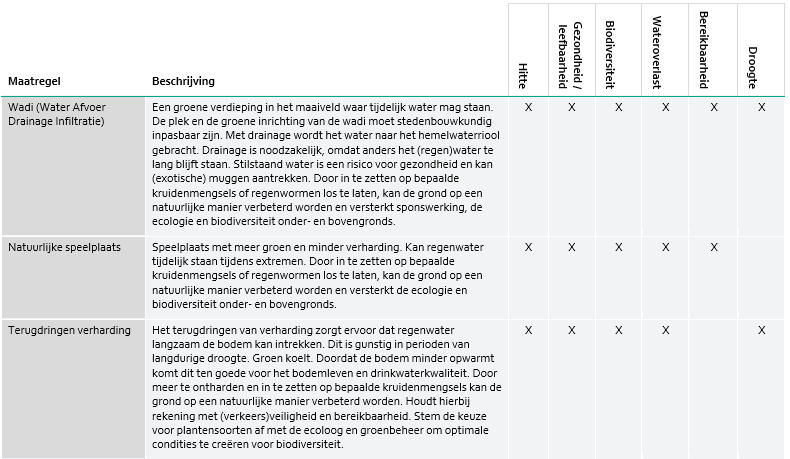 Bijlage 2: Overzichtstabel klimaatadaptatie openbare ruimte