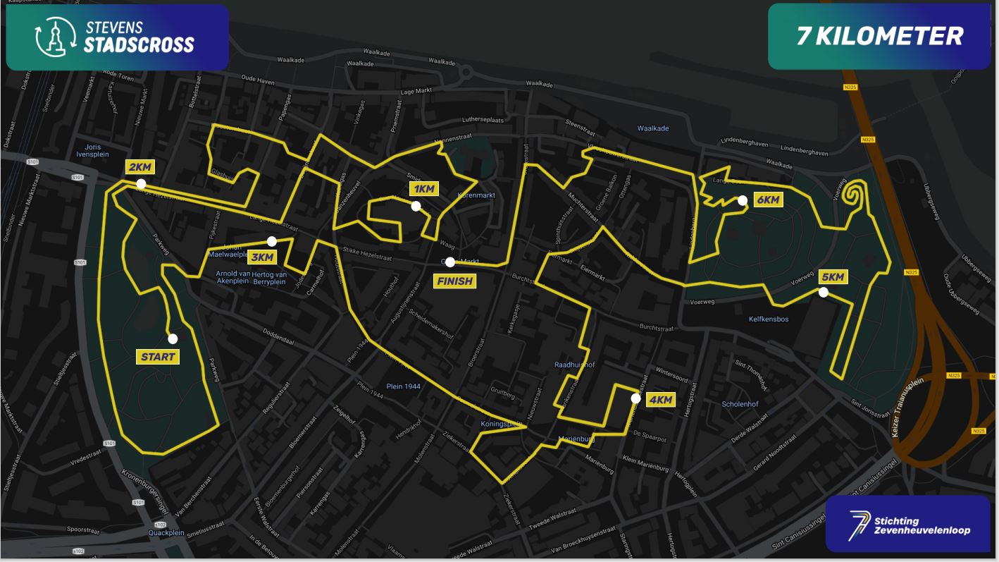 dat het stadscrossparcours onder meer via de Nonnenstraat, Lange Hezelstraat, Plein 1944, Valkhof en Grotestraat voert;