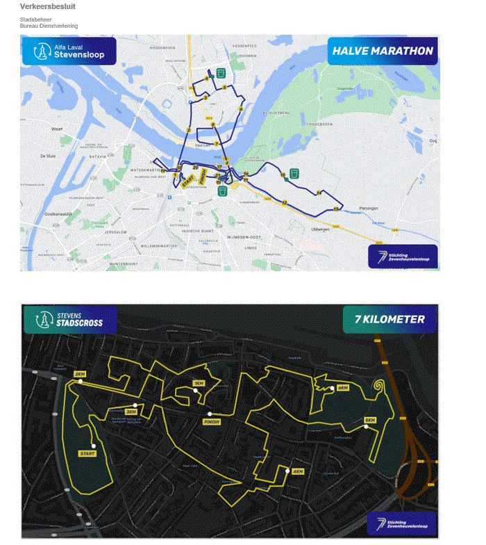 Verkeersbesluit voor tijdelijke verkeersmaatregelen voor de Alfa Laval Stevensloop op 15 en 16 maart 2025 te Nijmegen
