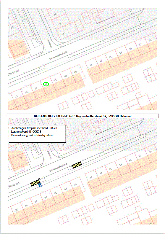 Verkeersbesluit voor het aanbrengen van een gehandicaptenparkeerplaats aan Geysendorfferstraat ter hoogte van huisnummer 39 te Helmond