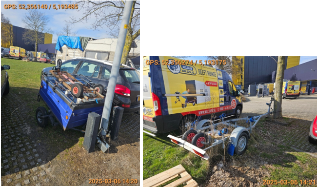 Op de Omroepweg ter hoogte van perceelnummer 11 te Almere staat een boottrailer en een aanhangwagen gestald, dit is in strijd met het bepaalde in artikel 5:5 van de Algemene Plaatselijke Verordening (APV 2011. Op grond van dit artikel is het verboden met een voertuig dat voor recreatie of anderszins voor andere dan verkeersdoeleinden wordt gebruikt zoals een caravan, een kampeerwagen, een aanhangwagen, een keetwagen of ander dergelijk voertuig langer dan op drie achtereenvolgende dagen zonder wezenlijke tijdsonderbreking te plaatsen of te hebben op de weg binnen de bebouwde kom.