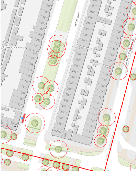 Julianaweg (ter hoogte van de zijgevel van het pand Julianaweg huisnummer 229; wegvak: tussen de Burgemeester Smitsstraat en 't Goylaan)