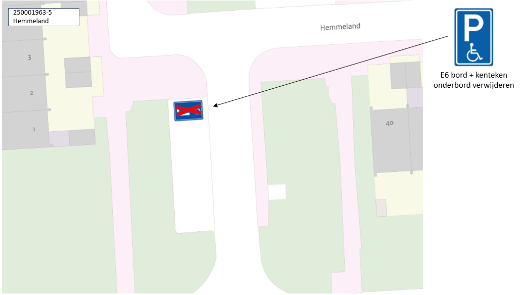 250001963-5 Opheffen op kenteken gereserveerde gehandicaptenparkeerplaats locatie Hemmeland te Lelystad door het verwijderen van het bord E6 (gehandicaptenparkeerplaats) van bijlage 1 van het Reglement verkeersregels en verkeerstekens 1990 en het verwijderen van het kentekenonderbord.