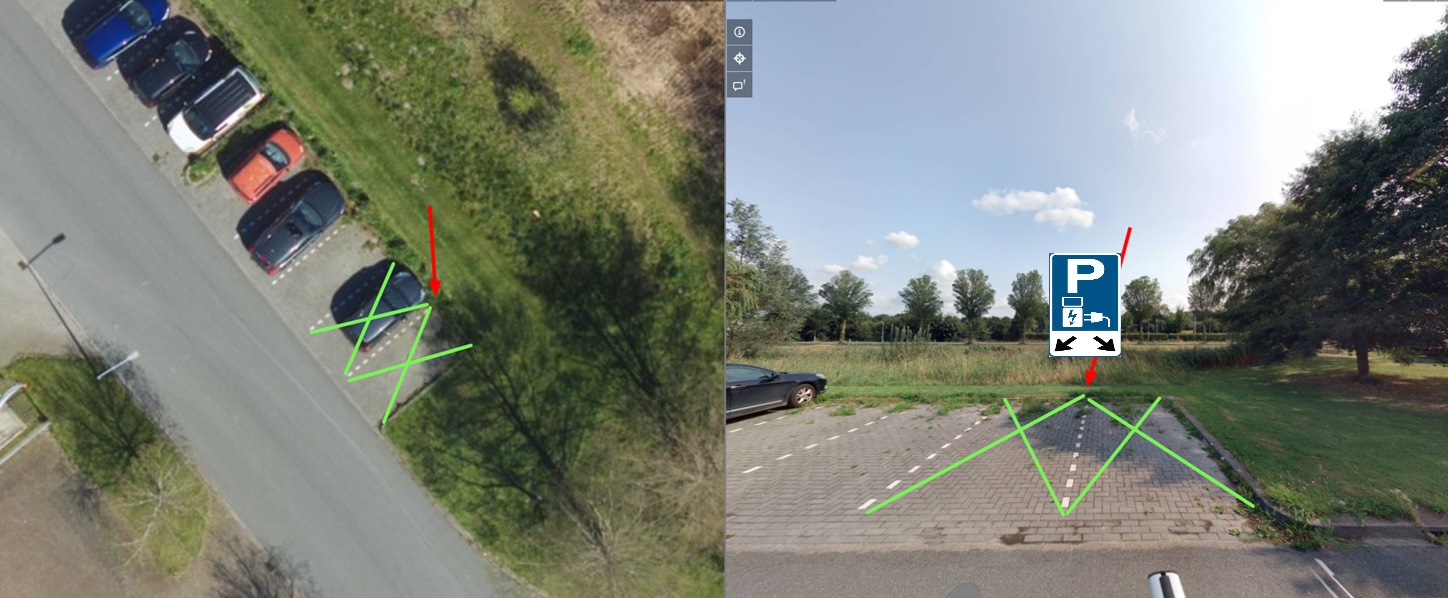 De laadpaal wordt geplaatst in het midden tussen twee parkeerplaatsen. Bij het kiezen van een nieuwe oplaadlocatie dient rekening gehouden te worden met de volgende criteria: