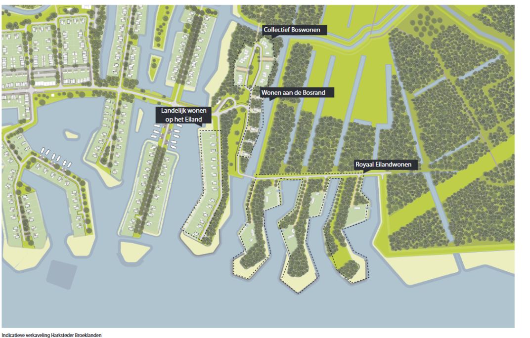 De getoonde beelden geven een suggestie weer van de architectuur. Het landschap komt niet overeen met de Harksteder Broeklanden.