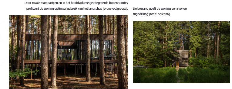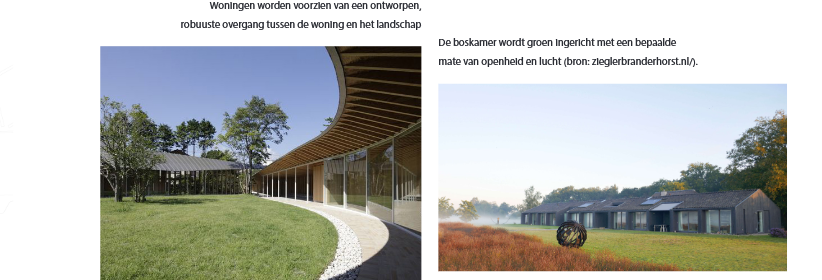 Woningen hebben geen traditionele tuin. Woningen worden in de plaats daarvan voorzien van een in ontworpen, robuuste overgang tussen de woning en het landschap, bijvoorbeeld in de vorm van een veranda of een in het hoofdvolume geïntegreerde buitenruimte. Het ontwerp van de overgang dient de privacy te waarborgen, robuust zijn vorm gegeven en de relatie tussen woonbeleving en landschap te versterken.