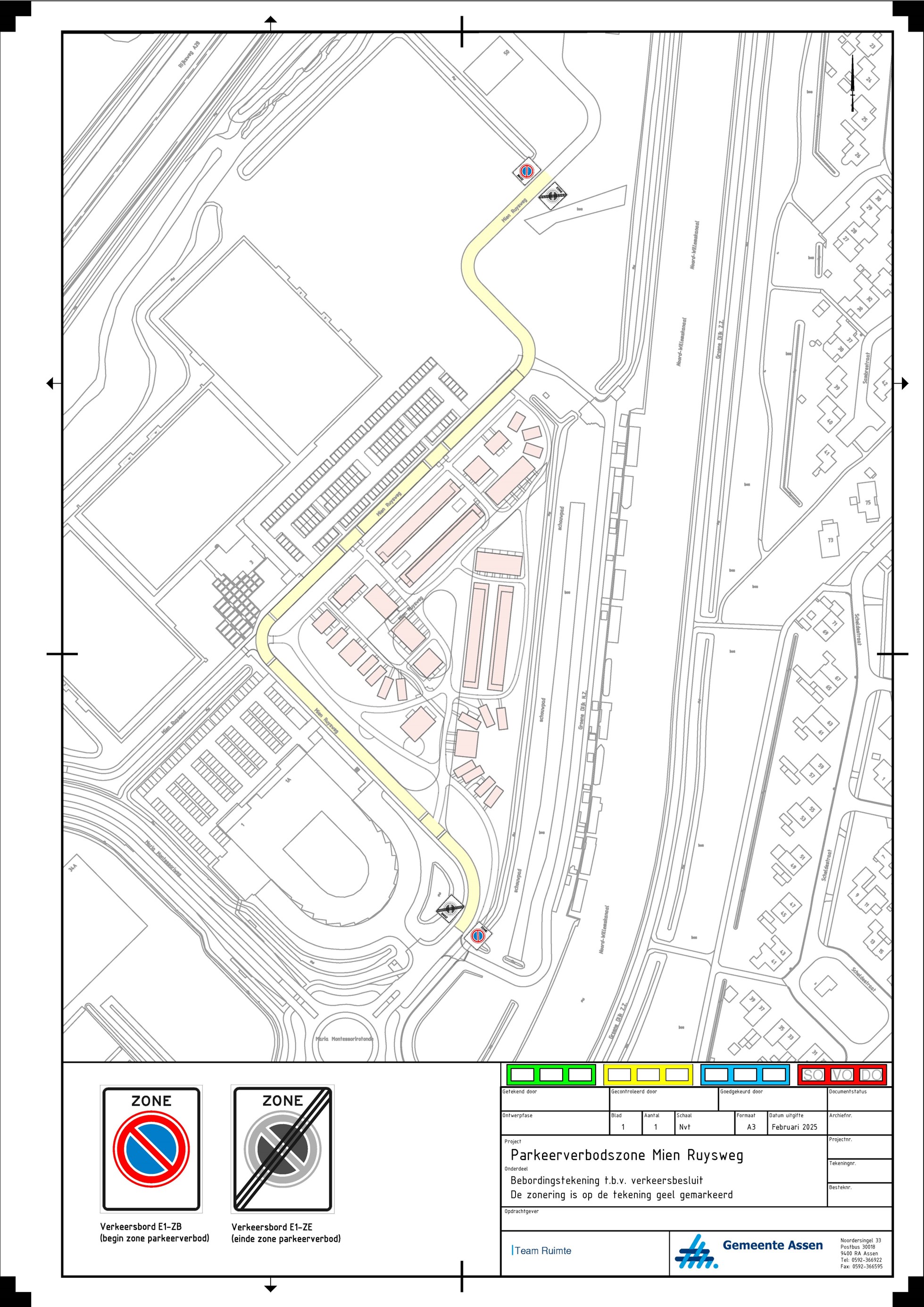 Verkeersbesluit parkeerverbodszone en parkeergelegenheid Mien Ruysweg in Assen
