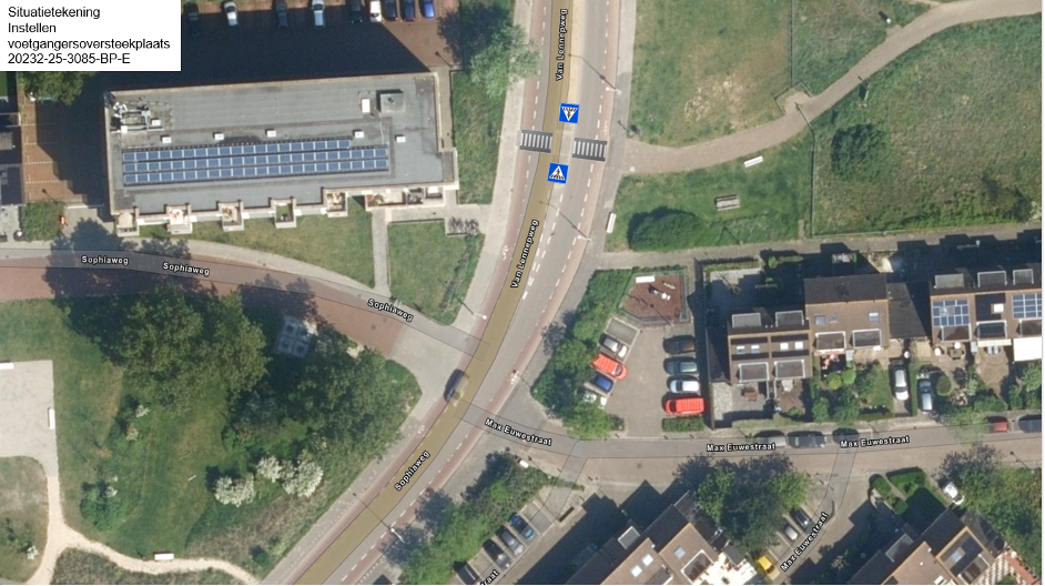 dat het gewenst is om kinderen en hun ouders uit de wijk bij de Max Euwestraat een veilige oversteek te bieden naar de nieuwe speelplek aan de Sophiaweg door middel van een voetgangersoversteekplaats (zebrapad);