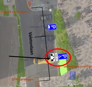 op de parkeerstrook van de Valetonlaan enkele laad- losplekken en gehandicaptenparkeerplaatsen zijn vastgesteld.