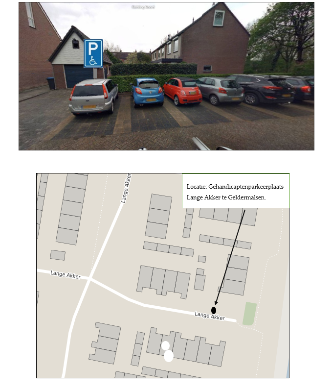 Het aanwijzen van een gehandicaptenparkeerplaats op Lange Akker te Geldermalsen, door het plaatsen van het bord E6 uit bijlage 1 van het RVV 1990 in combinatie met een onderbord met daarop het kenteken van de aanvrager conform de bij dit besluit behorende tekening en een symbooltegel in het straatwerk.