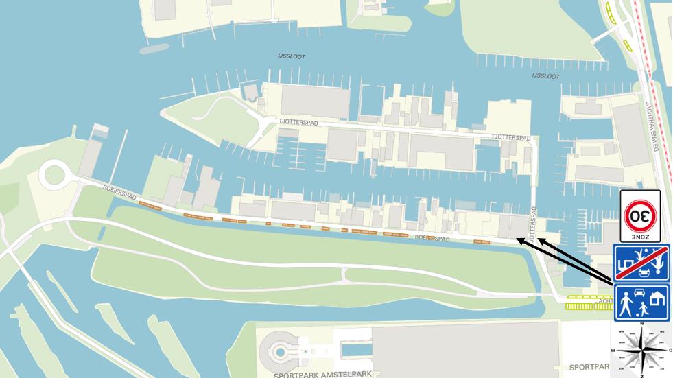 het Tjotterspad en Boeierspad in de huidige situatie erftoegangswegen binnen de bebouwde kom zijn waarop een maximumsnelheid geldt van 30km/uur, doodlopend zijn, de bebouwing dicht op de rijbaan staat, een rijbaanbreedte heeft van +- 2.5 m, al kenmerken van een erf heeft en onder beheer zijn van en gelegen zijn binnen de grenzen van de gemeente Amsterdam;