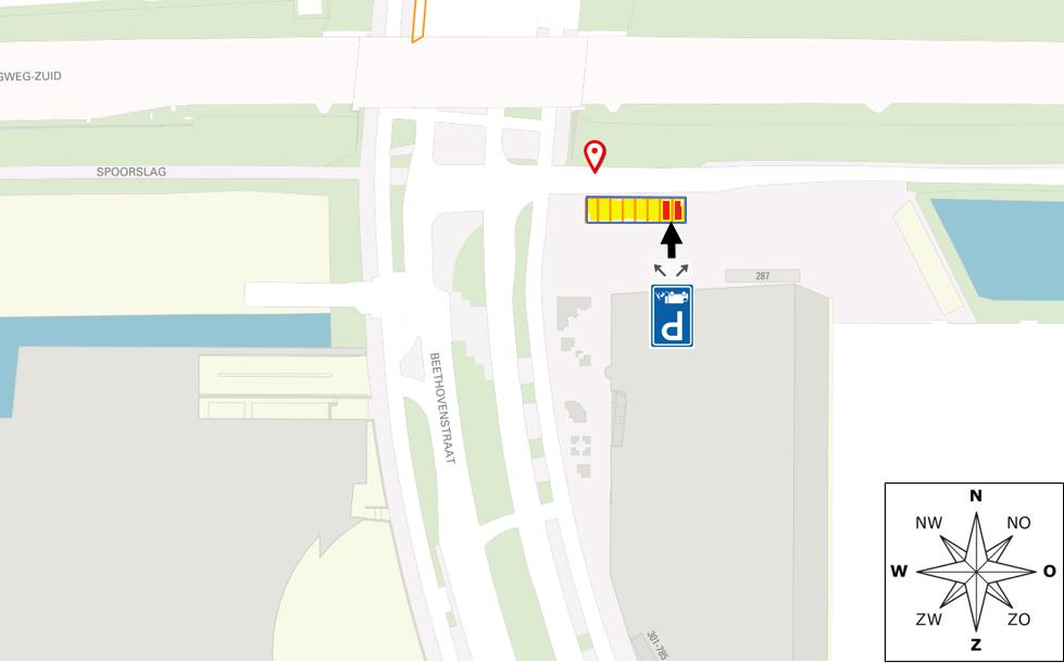 Door het plaatsen van verkeersbord conform model E7 van Bijlage I van het RVV 1990, gecombineerd met onderbord OB504 met daarop afgebeeld twee pijlen op een hoek van 45° (RVV 1990), te handhaven: twee parkeergelegenheden voor het onmiddellijk laden en lossen van goederen, op Spoorslag, aan de noordzijde van het gebouw The Valley (parkeervaknummers 120253483495 en 120256483495).