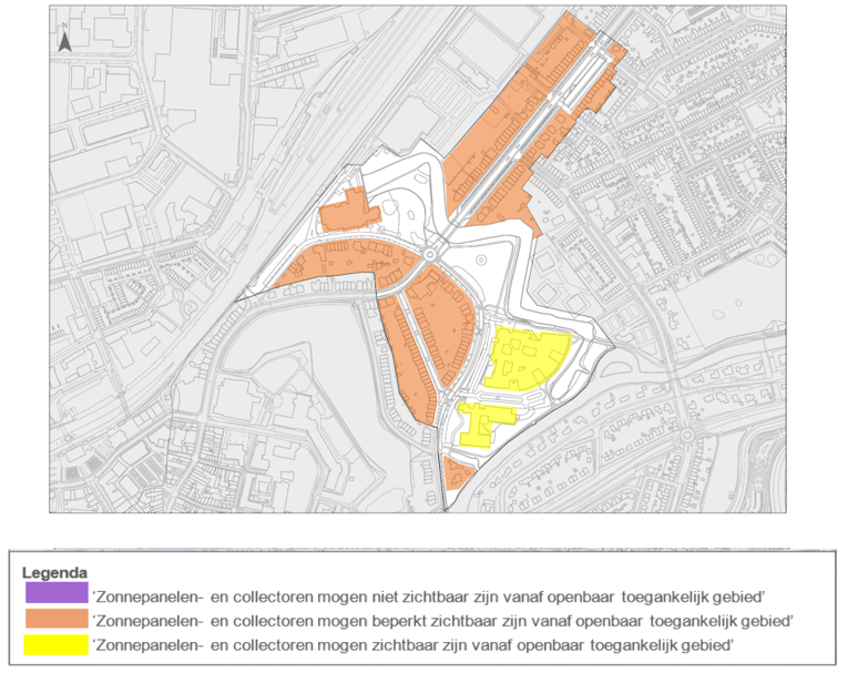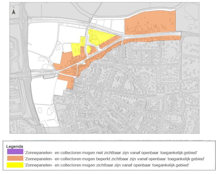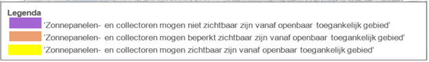 zonnepanelen op bouwwerken gelegen in oranje gebieden (2e categorie, zie kaart bijlagen 1, 2 en 3) mogen slechts beperkt zichtbaar zijn vanaf openbaar toegankelijk gebied, zolang:
