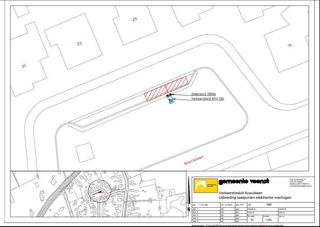 met het plaatsen van verkeersbord E8c van bijlage 1 van het Reglement verkeersregels en verkeerstekens 1990 (parkeergelegenheid alleen bestemd voor het opladen van elektrische voertuigen), voorzien van het onderbord OB504 (geldt voor twee vakken) en het aanbrengen van belijning twee parkeervakken nabij het adres Acacialaan 25 in Twello te reserveren als parkeergelegenheid bestemd voor het opladen van elektrische voertuigen.